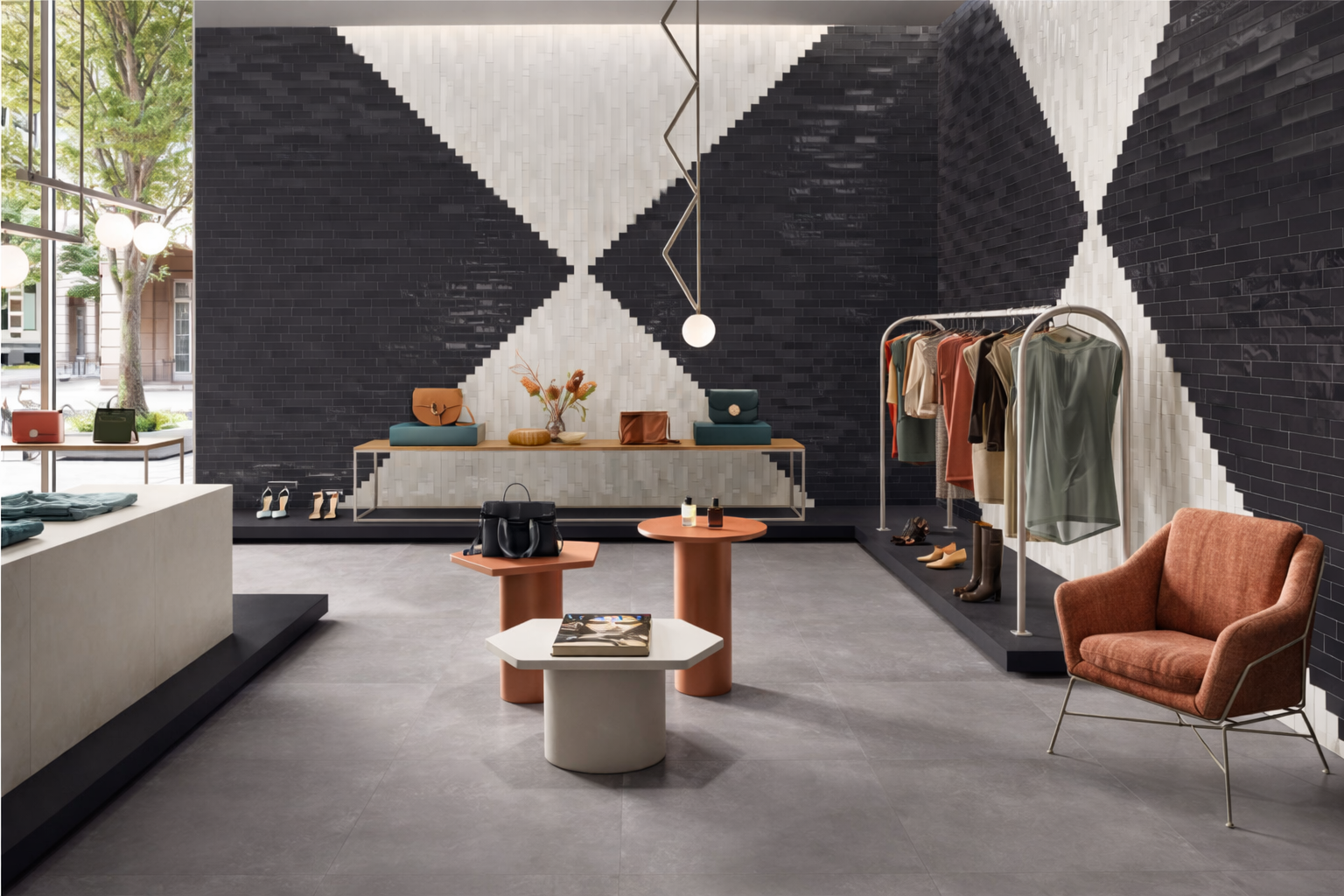 The association of different but totally matching materials generates a unique, contemporary series: three resins with different application potentials, a brick, and a wide range of decors.